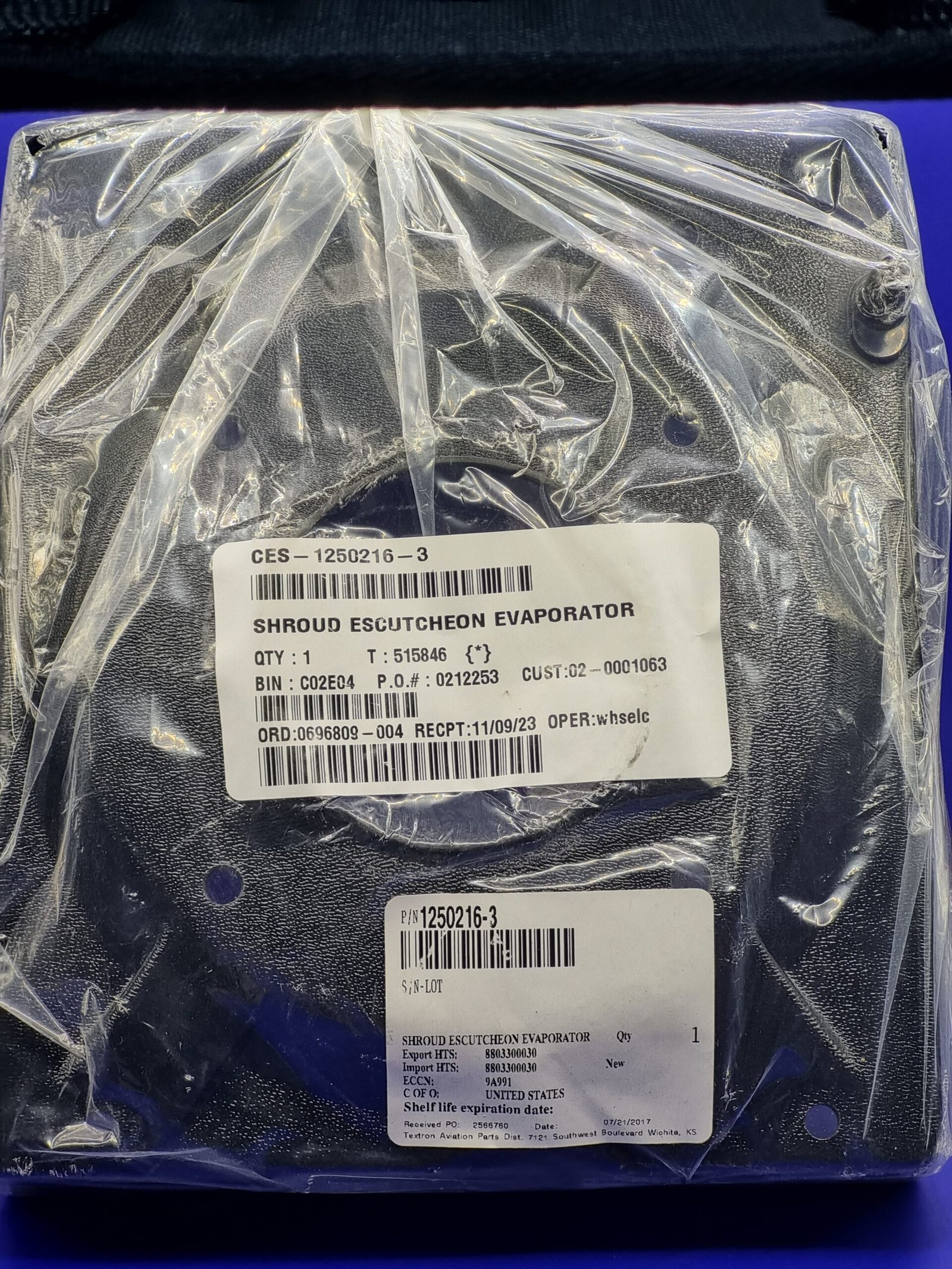 SHROUD ESCUTHEON EVAPORATOR 1250216-3